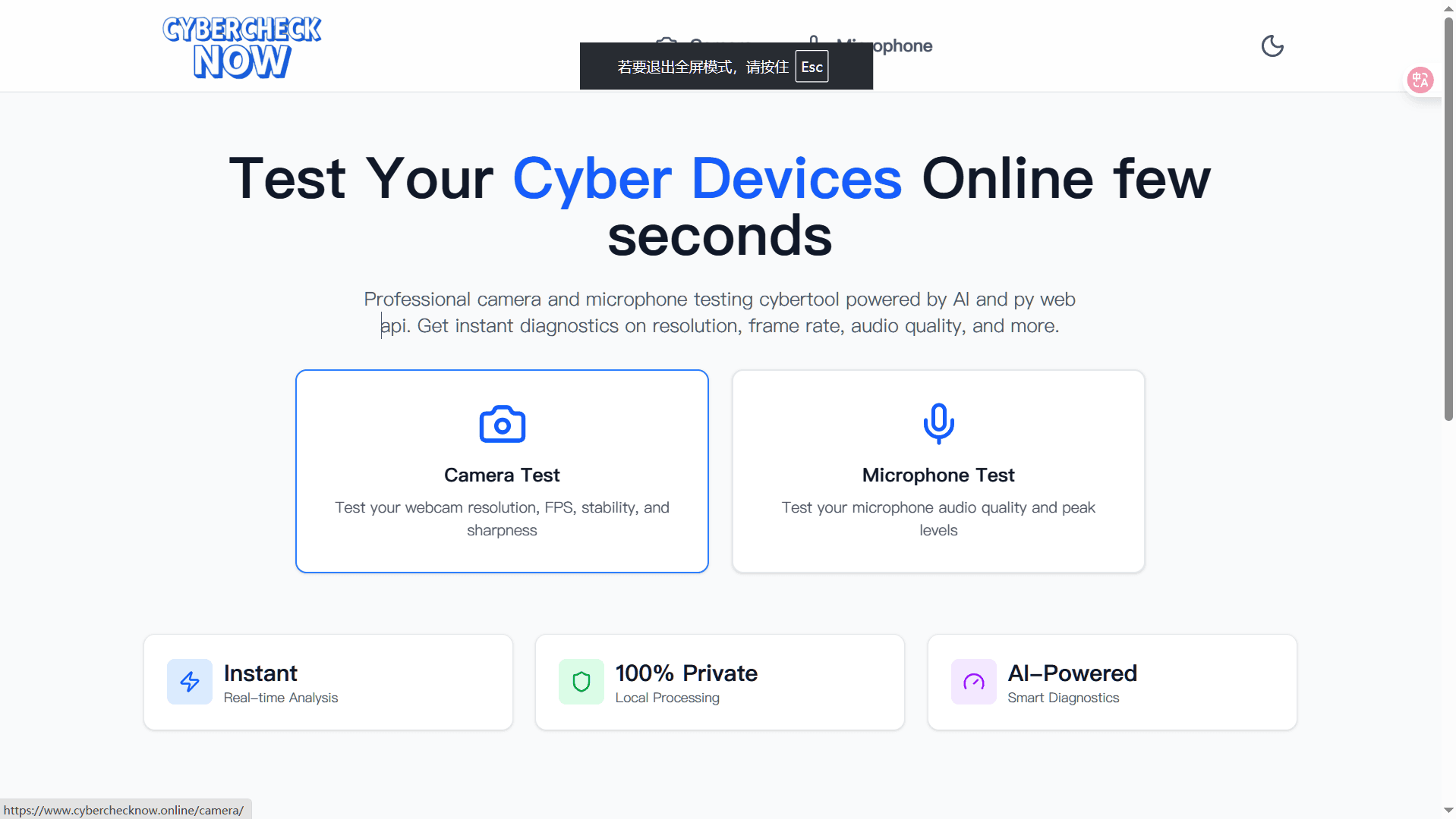 CyberCheck Now is a browser-based tool designed for fast and reliable device testing. It helps users verify their audio and video setup before important moments. Instantly test your camera and microphone in the browser Get real-time video and audio feedback with no installation Works on desktop and mobile, across modern browsers Ideal for online meetings, remote exams, interviews, and webinars Privacy-friendly: all tests run locally, no media is uploaded